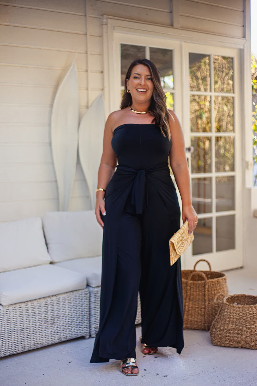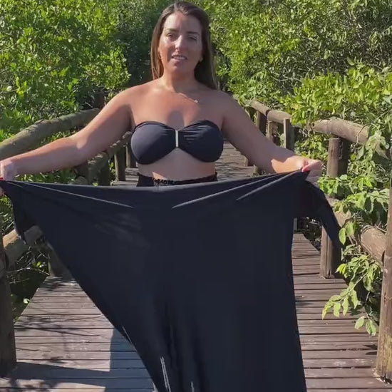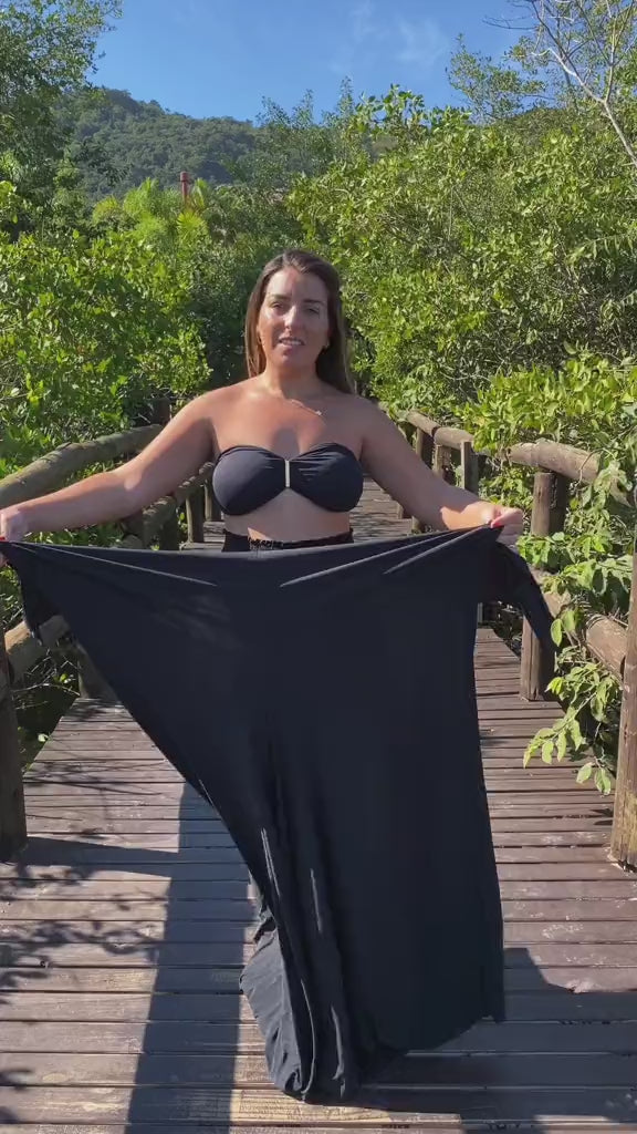 For the woman who wants everything in one outfit, the Black Jumpsuit Set delivers. Timeless black meets modern versatility, with a structured top for support and 5 styling options: strapless jumpsuit, halter jumpsuit, one-shoulder, wide-leg pants with bandeau, or cross-back.